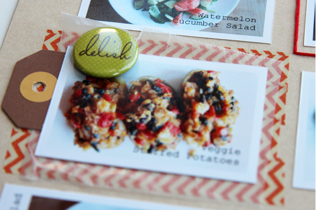 I used washi tape from Amy Tangerine's original AC collection behind the above photo. Washi tape really makes a great photo mat. I also added some wax paper behind a couple of my photos. I love the look and touch of "kitchen" that it adds to my layout.